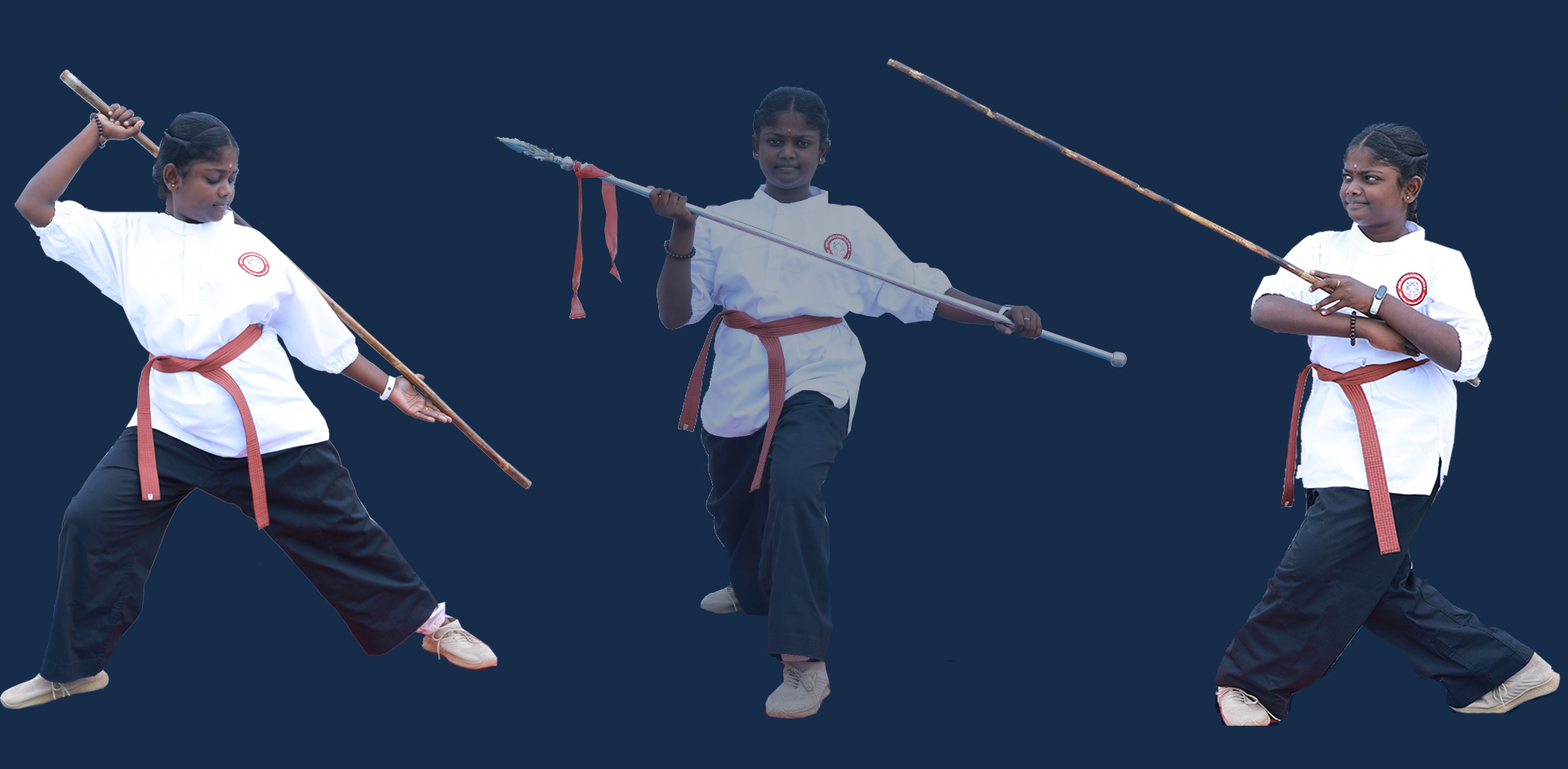 My Silambam instructor, Dr.Anbalahan Kuppusamy, Grand Master, 6th Dan, Silambam Korvai, Malaysia and Trichy M.Jayakumar who has been teaching Silambam for free for more than 40 years. M. Jayakumar who has been teaching Silambam for free for more than 40 years, has been instrumental in achieving these both nationally and internationally and has given me his greatest contribution in trainingand assisting me persistently to attain this stage.