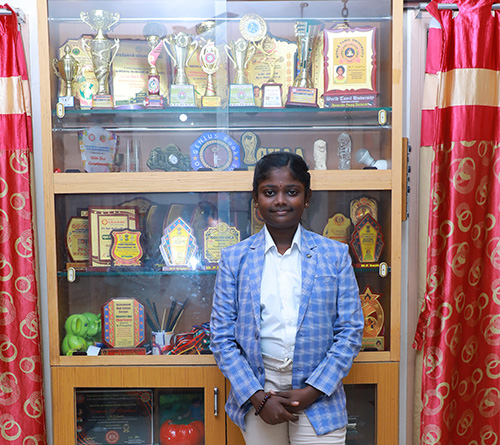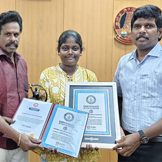 I have been involving myself in Silambam, a traditional art of Tamil Nadu, from 2019 winning awards in State, National and International forums. By God's grace, I have created new world records in silambam in the world record books of USA, Canada, England, Dubai, Malaysia, Asia and India. I have participated in International level competitions in countries like Singapore and Malaysia in 2019. Mr. Venkaiyah Naidu, the then Vice President of India appreciated me for my earnest efforts.