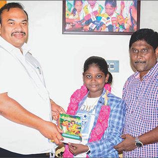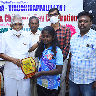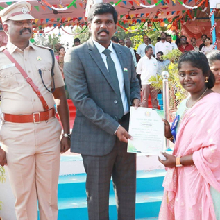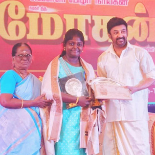 I received a cash award of Rs. One Lakh and 'Pen Kulanthai Munnetrathirkana Maanila Virudu 2024' from the honorable Sports Minister Mr. Udayanithi Stalin for my social services, social awareness, imparting knowledge among girl children, helping the needy and destitute people.