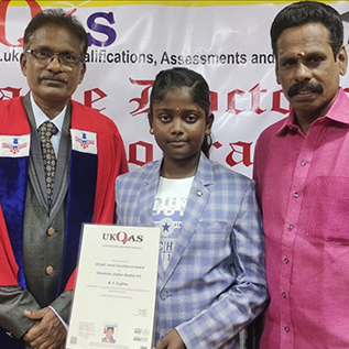 I was given 'UKQAS Junior Excellence Award' in Trichy by UK Qualifications, Assessments and Skills, England on 05-01-2022 for my performance at Silambam.