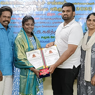 On 25.07.2021, the United States World Tamil University conferred the degree of Young Honorary Doctor on Silambam for his achievement.